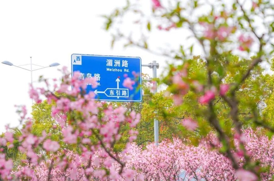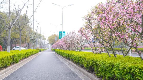 继续前行,行至南引横河路,花木疏密有致,阳光穿过花枝,洒下温柔斑驳的光影;高岛路、湄洲路上,海棠与市井烟火相融,花开清雅,家园安稳,闲适又治愈;途经一江山路及崇明大道将春日氛围感拉满。最后沿环线悠然返回新城公园,一路繁花相送,春风绕肩,为整条骑行之旅画上圆满的句号。