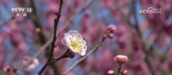 目前,梅花山上的3.5万株梅花已全面绽放,花间小径上,游客们在绚烂的花海中不时驻足拍照留念。