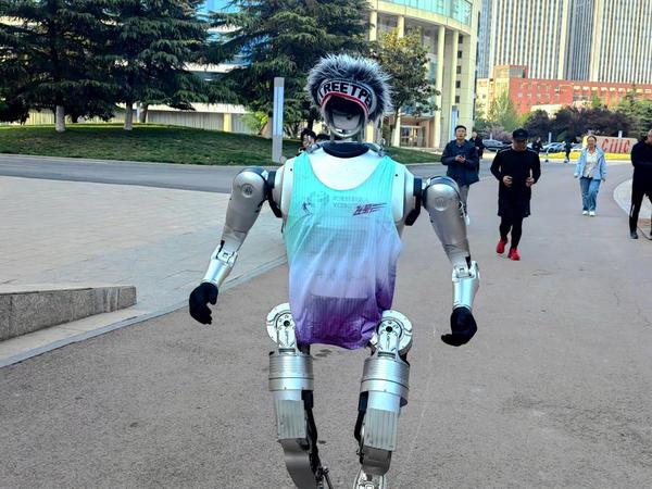 在山东济南高新区齐鲁软件园,人形机器人“行者泰山”正在进行“特训”。这款由山东优宝特智能机器人有限公司研制的机器人,因其曾在“2025世界人形机器人运动会”100米表演赛中取得第一名,吸引了不少“粉丝”前来伴跑。