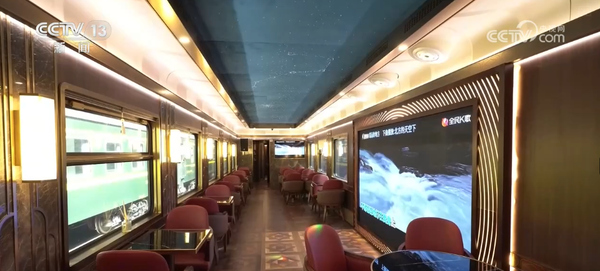 除了做好细节设计,旅游专列还设有穹顶星空主题的餐厅车厢,为旅客打造惬意的饮食空间。