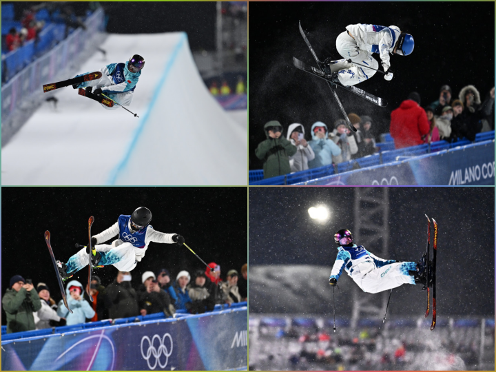 图为李方慧(左上)、谷爱凌(右上)、张可欣(左下)、刘奕杉(右下)在比赛中。