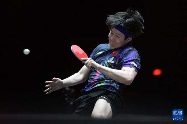 2月24日,王楚钦在比赛中回球。