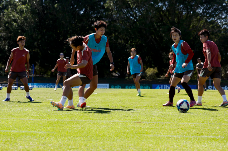 上午的灿烂阳光斜斜地洒在草坪上,映衬着碧蓝的天空。中国女足姑娘们正在场上进行战术演练,澳大利亚籍主教练米利西奇的指挥声,与队员们的呼喊声此起彼伏,绿茵场上充满了拼搏与专注的气息。