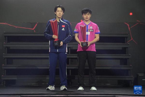 3月1日,冠军王楚钦(左)与亚军林昀儒在颁奖仪式上。