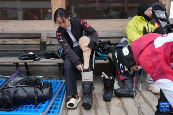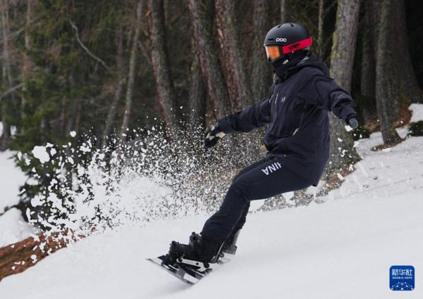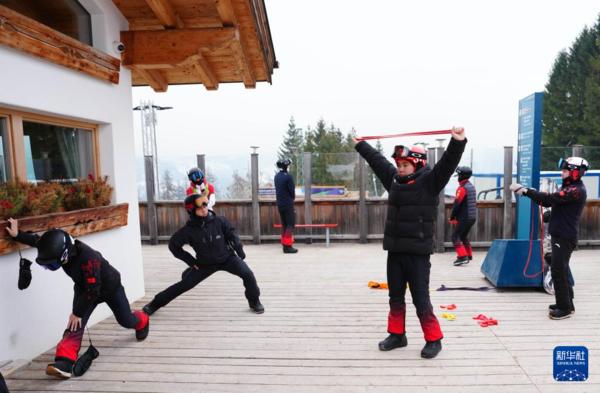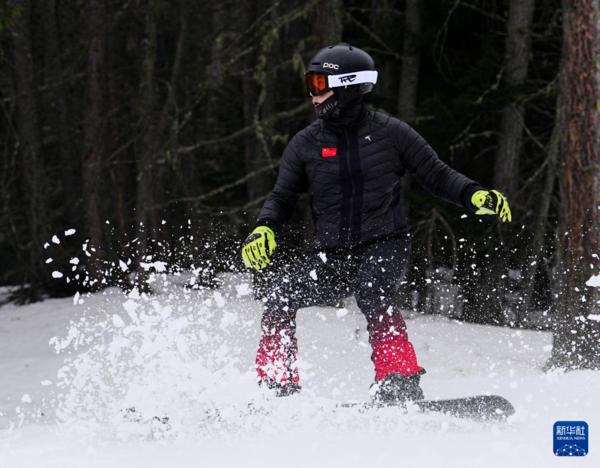当地时间3月2日,米兰-科尔蒂纳冬残奥会中国体育代表团残奥单板滑雪队在意大利科尔蒂纳进行赛前适应性训练。
