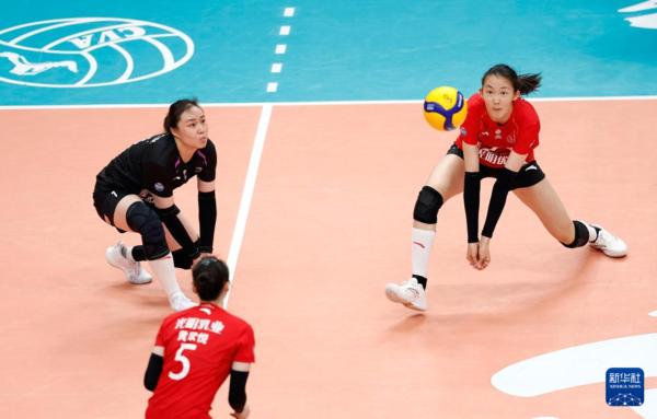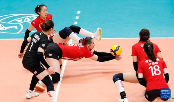 3月3日,上海光明优倍队球员仲慧与高意(右)在比赛中救球。