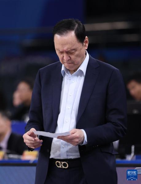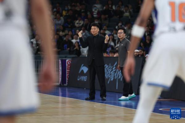 4月13日,新疆伊力特队主教练姜正秀(中)在场边指挥。