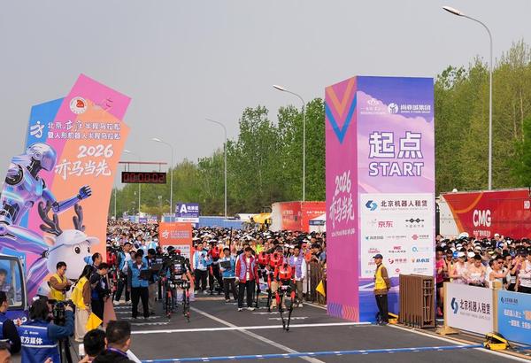 全球科技目光再次聚焦北京。4月19日7时30分,北京经开区通明湖畔,100多个人形机器人与1万多名人类跑者同站在一条起跑线前,静候发令枪响。