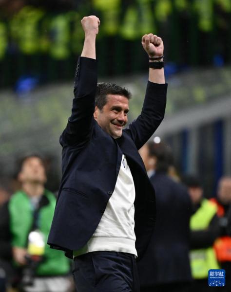 4月21日,国际米兰队主教练齐沃庆祝胜利。