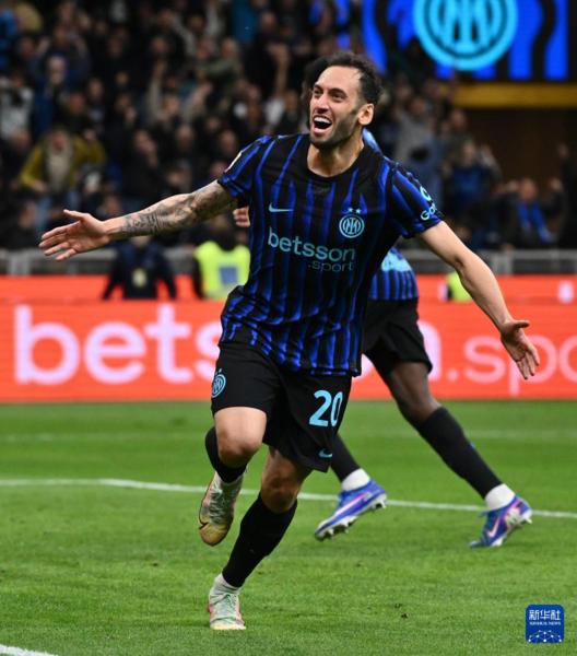 4月21日,国际米兰队球员恰尔汗奥卢庆祝进球。