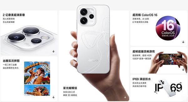 Reno15的设计灵感源自灵动闪耀的运动芭蕾美学,将“蝴蝶结”这一充满生命力的符号融入机身设计,传递出“系上蝴蝶结,点亮此刻星光”的美好寓意。为了实现这一设计,Reno15系列星光蝴蝶结配色版采用了行业首发的全息光刻工艺,在机身背部打造出立体灵动的裸眼3D蝴蝶结纹理,配合闪光砂镀膜勾勒出的星光爆闪银边,宛如银河倾泻,带来极致的视觉体验。