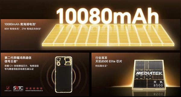 荣耀Power2全球首发了10080mAh的青海湖电池,相比上一代荣耀Power的8000mAh电池,容量提升了26%。这一提升不仅让荣耀Power2能够轻松满足用户两天以上的使用需求,更为户外高强度作业者提供了全天不断电的可靠保障。据官方实测,荣耀Power2从深圳自驾到成都可连续导航17.3小时,坐火车从广州到沈阳能连续追剧32.5小时,户外直播更是能坚持8.3小时,彻底解决了用户的续航焦虑。凭借这一强悍的续航能力,荣耀Power2荣登三大权威媒体续航榜单TOP1,成为真正的续航巨无霸。