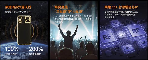 此外,荣耀Power2还内置了C1+射频增强芯片和4根独立天线,业界首创双轨平行天线设计,带来了低频超级四天线系统。这一设计不仅增强了弱网环境下的信号接收能力,还提升了离开无网环境时信号恢复的速度,确保用户在任何情况下都能保持畅通的通信。