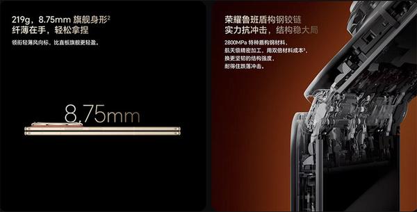 在容纳超大电池的同时,荣耀Magic V6依然保持了极致的轻薄手感。其折叠状态下的厚度仅为8.75毫米,整机重量控制在219克,单边厚度更是低至4毫米,彻底打破了“大电池必厚重”的刻板印象。