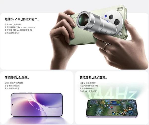 在影像方面,vivo X300s搭载了全焦段蔡司影像组合,包括2亿像素蔡司主摄、5000万像素蔡司超广角镜头和5000万像素蔡司3倍长焦镜头。主摄采用三星HPB传感器,拥有1/1.4英寸超大底和f/1.68大光圈,配备OIS光学防抖,感光面积较上代提升28%,进光量提升30%,即使在低光环境下也能拍摄出清晰明亮的照片。长焦镜头则支持3倍光学变焦和100倍蔡司超清数字变焦,搭配全新的口红200增距镜,更是成为演唱会等远距离拍摄场景的利器。