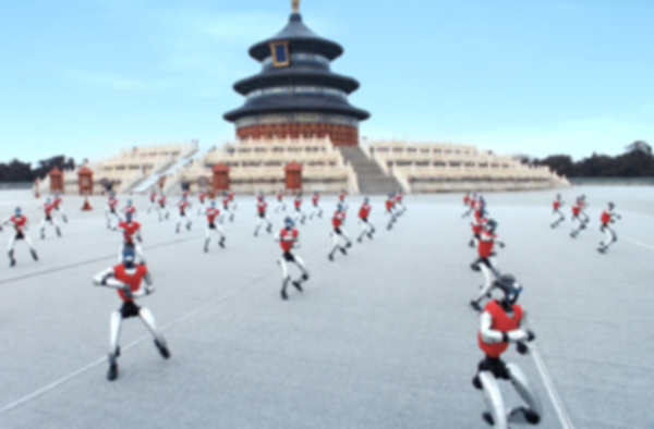 50台宇树G1机器人空降天坛!红袍加身大秀武术 堪比科幻大片
