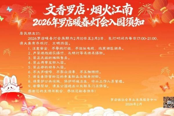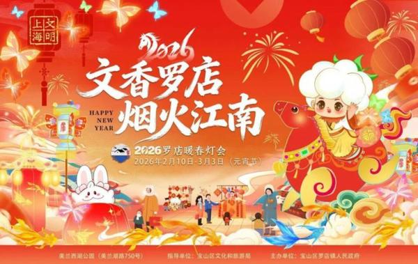 马年新春,罗店暖春灯会即将璀璨上线。灯会以“文香罗店 · 烟火江南”为主题,以“三湾九街十八弄”为卷,从2月10 日到3月3日,美兰湖畔灯影摇曳,非遗罗店彩灯焕新亮相,串联起古镇风情、潮流市集与文化展演。流光勾勒江南,烟火温暖人心,邀你在光影里赴一场团圆年味之约。