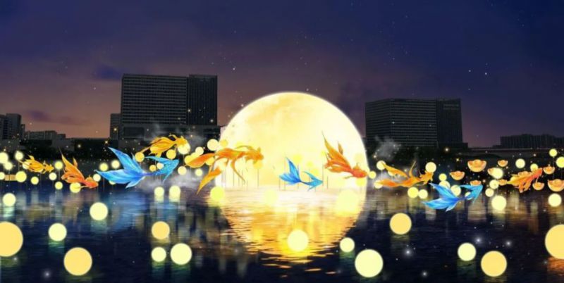 “三湾映悦揽星河”——明月浮水,锦鲤衔元宝跃波,仿佛传说踏梦而来。