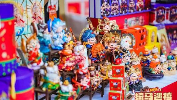 “绮乐潮玩”聚焦文化创意与潮流艺术的碰撞。众多热门IP限定产品首度亮相南京路,让新春文化与潮流艺术碰撞出奇妙火花:顶流IP“周同学”潮玩周边集结,打造“周同学的新年礼物场”,也是送给城市的潮玩新年礼;康师傅联手甘肃博物馆“马踏飞燕”的绿马IP打造了一场好吃又好玩的“抓马”新春聚会,沉浸式感受文化“活”起来的乐趣;国潮祈福文化“福福贴贴”,更是将传统文化的萌度拉满,把千年的祝福带回家;黄浦邮政带来的“丙午年”生肖邮票、马年明信片等文创产品,以方寸之间展现中国传统文化魅力,游客可现场打卡寄递,传情达意。