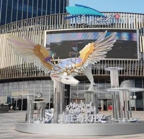 带娃看超炫酷的“沧溟神柱”动态光影,寻找象征智慧与平安的神兽白泽,宛若振翅踏浪而来,氛围感十足,将马年吉祥寓意与滨江开阔景致融为一体。