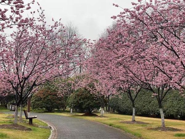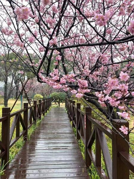 靠近公园2号门的美人路真是名副其实,雨中漫步,两旁开满椿寒樱,游客稀少,能放下生活与工作的压力,独享静谧的樱花美景。