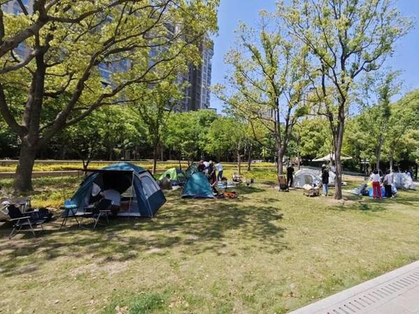 穿过荷樱花湾,眼前是一片开阔的露营草坪。周末时分,这里支起五颜六色的帐篷,孩子们追逐嬉戏,大人围坐聊天,是家庭聚会、好友相约的理想去处。 不远处的儿童乐园也传来阵阵欢快的笑声,滑梯、摇马等设施让这里成了小探险家的乐园,为徒步之旅增添一份纯粹的童趣。