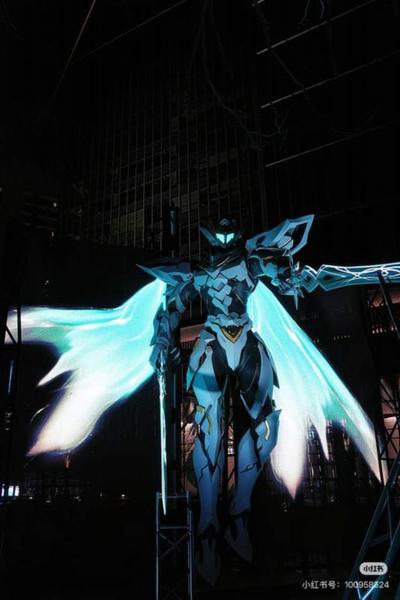 往西南方位走,徐汇区鑫耀·光环Live二期的流萤·萨姆机甲,也有许多人在等天黑。它出自《崩坏:星穹铁道》,8米高的机身科技感十足,夜晚亮灯后效果震撼,成为潮人首选。机甲通体银白,背部搭载柔性冰屏模拟流光羽翼,通常18:00准时亮灯,19:30后轮流上演动态灯光秀,冰屏呈现苍蓝与金橙交织的火焰特效,科技感拉满。