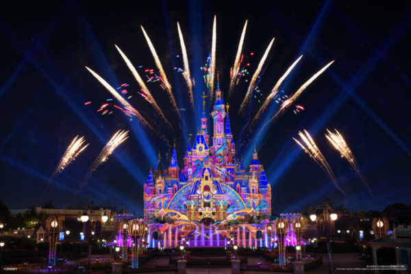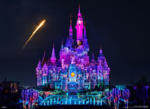 夜幕降临,璀璨夜间演出“奇梦之光幻影秀”迎来庆典专属的神奇终章——奇妙在身边:10岁生日特别欢庆。