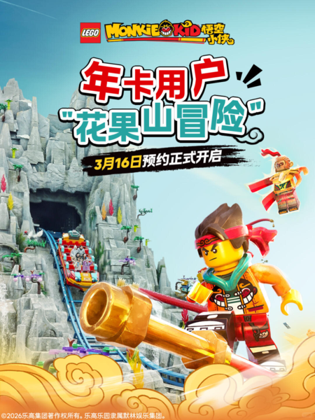 上海乐高乐园度假区全新骑乘项目——“乐高悟空小侠花果山冒险”,已启动面向受邀用户的试运营。游客可以乘坐神秘游船,在光影交织的沉浸式场景中穿越花果山秘境,开启前往龙宫的刺激探险。随着游船缓缓上升至高处,游客不但将与高约10米的悟空小侠机甲惊喜邂逅,还将在随后体验极速俯冲、水花四溅的刺激时刻。
