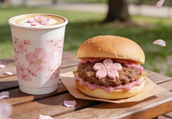 樱花季周末,在樱花岛区域设有特色花车集市,售卖各种与樱花相关的美食。