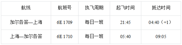 2026年3月29日起 加尔各答往返上海航班时刻表