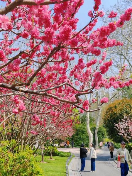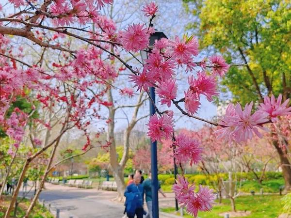 “这里的桃花品种多、花色美,尤其是五色碧桃,在上海其他公园很少见到。”摄影爱好者陈先生告诉记者,他每年春天都会来中山公园拍桃花,今年花开得格外好。不少市民携家带口,在花下流连忘返,用手机、相机记录下这春日的限定美景。