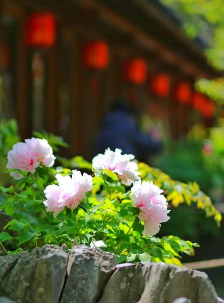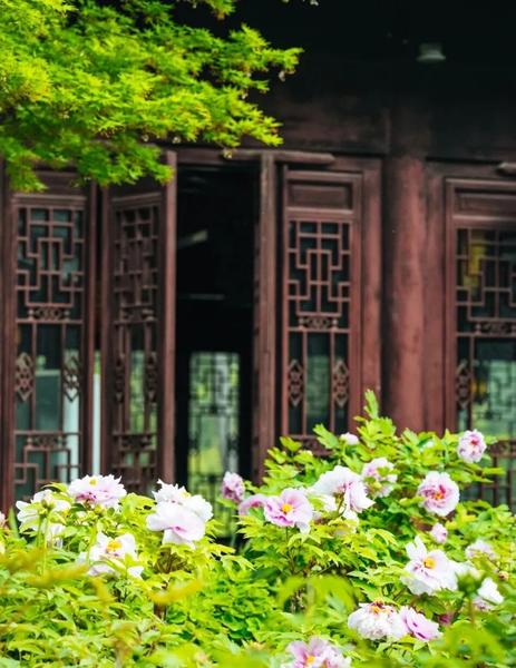 没有闹市喧嚣,青砖黛瓦映着娇艳牡丹,一步一景皆成诗。粉白、淡紫、浅红的牡丹与回廊、漏窗相映成趣,偏爱安静赏花、拍古风照片的朋友一定不要错过。
