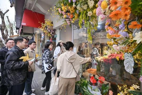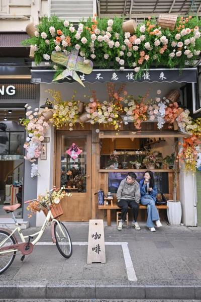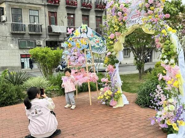春日的淡水路,与浪漫花事撞了个满怀。周六中午,追梦园淡水路口,一座蝴蝶结花艺装置惊艳亮相,瞬间成为整条街最吸睛的焦点。不少市民与外国游客纷纷驻足拍照,定格上海小马路的独特风情。来自法国的游客安娜也对着装置频频按下快门,用不太流利的中文说道:“这里很美,花和街道很配,是上海独有的温柔。”10家“花花青春小店”扮靓街头,邀人开启探店盲盒,为上海国际花卉节提前预热添彩。