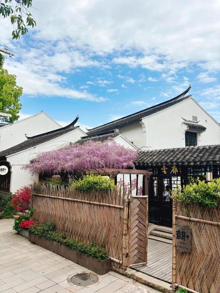 左手咖啡的醇厚,右手紫藤的浪漫,耳边是软糯的评弹小调,在古韵与现代感的碰撞中,解锁春日限定的美好。不用奔赴远方,在练塘的一隅,就能拥有这份独一份的惬意与浪漫。