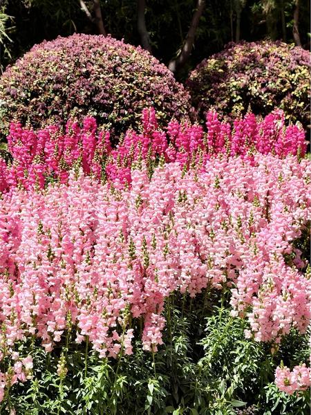 成片粉色花卉在阳光下肆意绽放