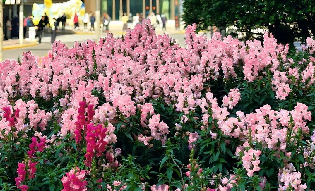 门口花坛鲜花盛放