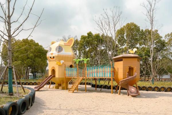 藏在林间的零碳乐园简直是无动力遛娃天花板,低碳环保童趣感拉满——5米高的松果攀爬塔超吸睛,搭配巨型木质松鼠滑梯,一爬一滑互动感拉满!