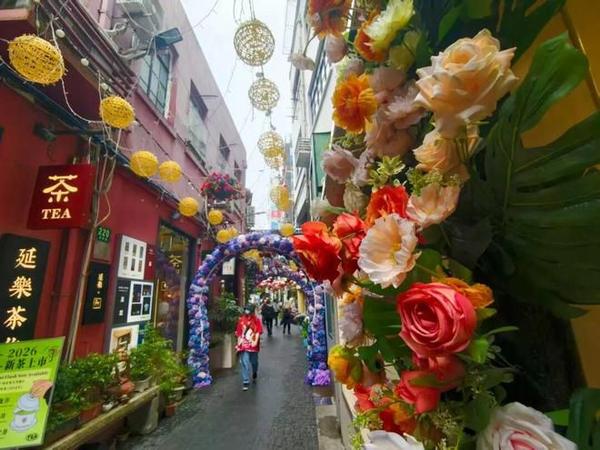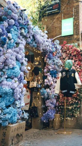 更令人期待的是“一店一花一景”的商户联动,文创小店用干花装饰橱窗,花艺工作室将鲜切花束悬挂于门楣,咖啡馆推出鲜花主题特调,酒吧则用花串打造浪漫吧台。