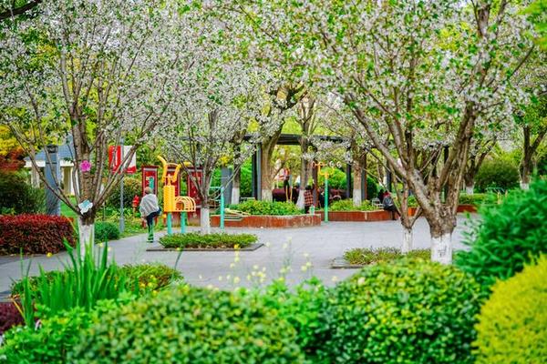 春日的公园,是居民们享受生活的乐园。健身区里,居民们舒展筋骨;游乐场上,孩子们嬉笑奔跑;草坪上,人们漫步赏花、拍照打卡。