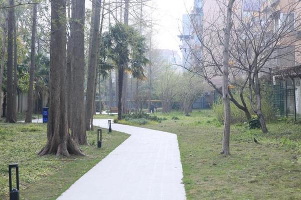 1540平方米的长条形小园,藏在居民区边上。入口有铁艺景墙,往里走是林荫广场和木栈道,海棠、红叶李开得热闹。傍晚时常能见到阿姨们跳舞,小朋友跑来跑去。