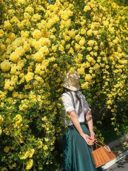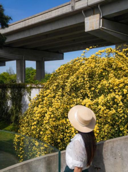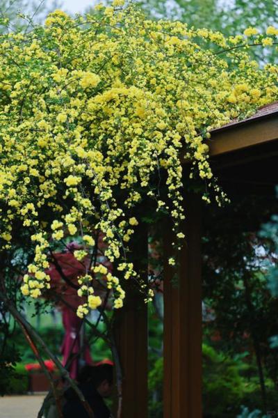 2号门与3号门之间,玉兰林的木香小屋爬满黄木香,金色花瀑倾泻而下,宛如莫奈笔下的油画世界。