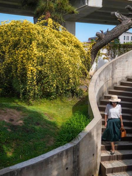 巴洛克风格的威罗瓦城堡旁,黄木香如瀑布般倾泻而下,错落的水泥台阶、玻璃露台,搭配满墙的金黄,随手一拍就是文艺感拉满的氛围感大片。