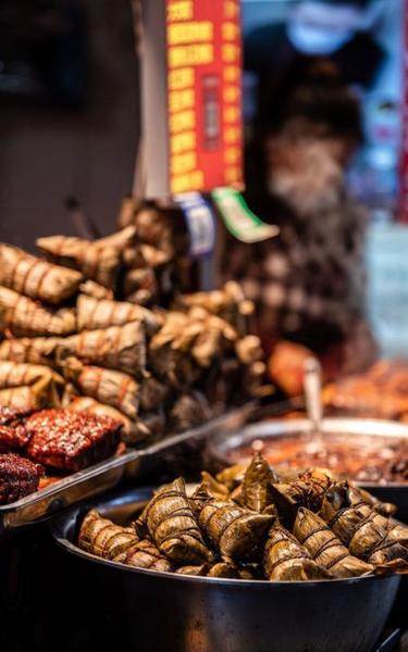 咖啡馆里,手冲咖啡的棕色液体缓缓滴落,搭配刚出炉的面包,麦香与咖啡香交织。坐在老宅二层的木窗前,看楼下人来人往,慵懒刚刚好。而阿婆粽是朱家角最踏实的棕色记忆,糯米经酱油浸润呈琥珀色,五花肉肥瘦相间,粽叶的清香渗入每一粒米。还有海棠糕,最上面那层烤得焦脆的焦糖层泛着琥珀般的棕褐色,咬一口,外脆里糯,豆沙流心,甜到心坎。