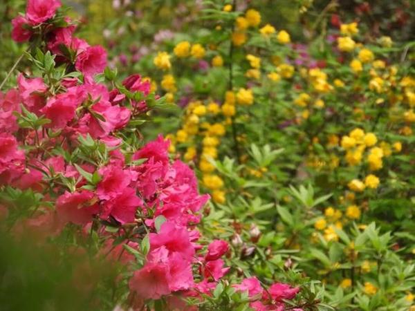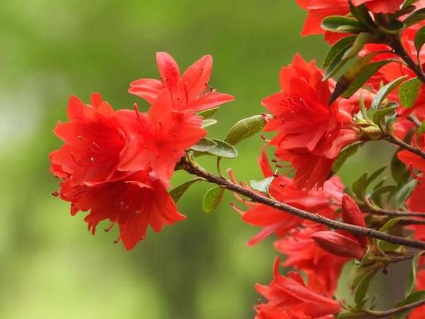 在共青森林公园的水森林湿地、叠水景观区、万竹园等地,十余个品种的杜鹃花交织成卷,特别是万竹园内新引进了“大津”“粉蝴蝶”“白蝴蝶”三个品种的杜鹃 ,花朵繁密、姿态优雅,吸引众多游客驻足拍照。