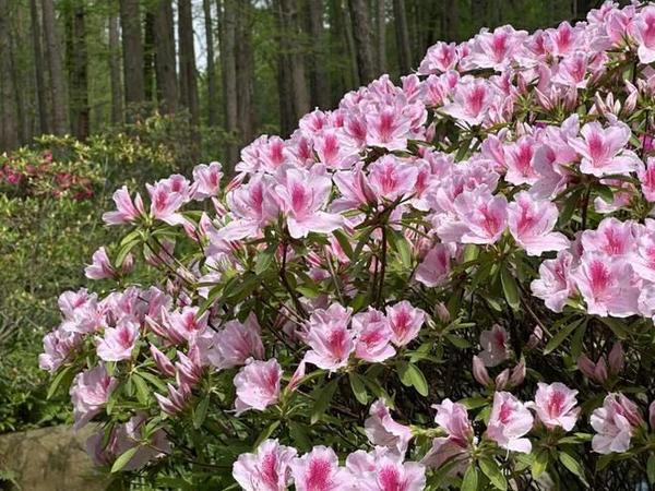 园容科工作人员黎梦萍介绍:杜鹃花是杜鹃花科杜鹃花属的落叶灌木。它的花期是4到5月份,现在正值它的盛花期。尤其是我们万竹园东侧区域新种植了三个品种,它的花色是粉白和红色的,是比较特别的。除此之外我们共青森林公园的杜鹃花种植面积也是比较大的, 它总体面积可以达到15,000平方米,可以大规模的欣赏杜鹃花的盛况。