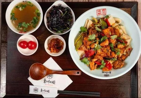 新疆大盘鸡拌面也颇受市民朋友欢迎,采用劲道拉面搭配香辣浓郁的大盘鸡,鸡肉鲜嫩、土豆绵糯,汤汁厚重,完美复刻西北豪迈风味。“我是新疆人,我刚刚吃了这里的大盘鸡,觉得这就是家乡的味道。”市民徐小姐说,“我会推荐我的家里人来吃,味道很棒!”