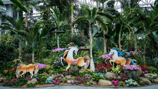 上海植物园年宵花展四座温室绘就花马迎春盛景